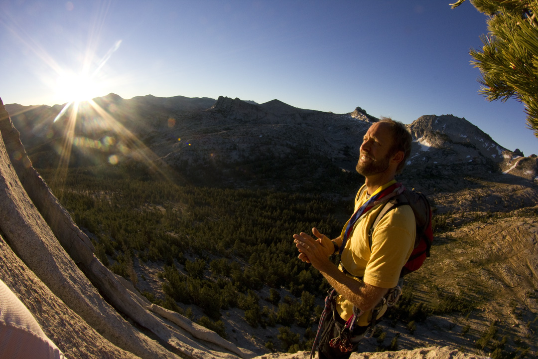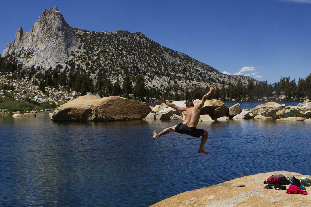 The climbing was only 5.6. Most experienced climbers would do it without a rope, but I’d been bodysurfing, gardening and hanging out with my two year old more than climbing, and decided to be a responsible dad. We did the Cathedral Traverse, which connects Cathedral Peak to a ridgeline with several other summits. It was a big day and the route pushed Clarke and I hard, which is what we wanted – a little penance for our absence. At the end we jumped in a lake, the best part of a day of climbing. The dirt and sweat and heat comes off and you feel cleansed beyond the physical. Your knees are iced, your feet cooled, your body tingles, your mind is quiet. You feel an uncommon, almost otherworldly peace, and it sticks around for a while. You’ve spent a little time in that part of life that lies out there like the rest of Yosemite, elevated and rarely traversed, and you resolve to come back more often before heading back down the trail toward the car.