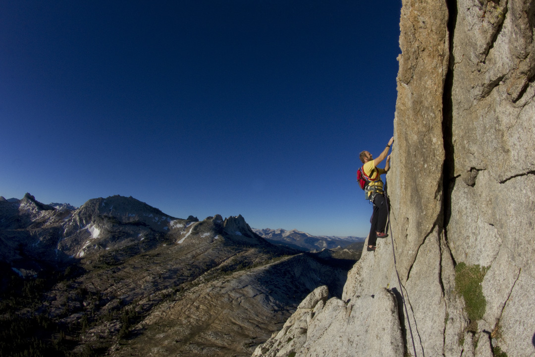 I got a call from my buddy Clarke and I had to go. He had a plumb line picked out in the high country, away from the heat and crowds of Yosemite Valley, and was looking for a climbing partner. We were headed for a route on Cathedral Peak, 700 feet of gleaming white granite topping out at 10,916 feet.